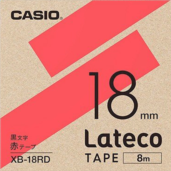 カシオ ラテコ 詰め替え用テープ 18mm 黒文字 / 赤テープ XB-18RD