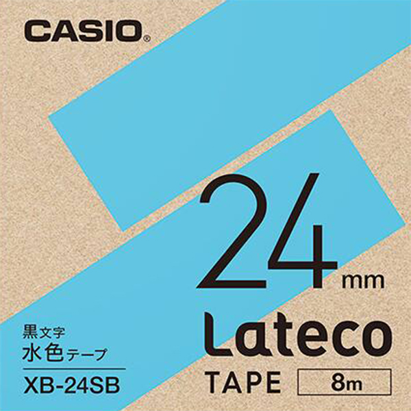カシオ ラテコ 詰め替え用テープ 24mm 黒文字 / 水色テープ XB-24SB