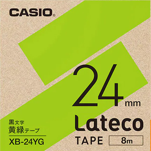 カシオ ラテコ 詰め替え用テープ 24mm 黒文字 / 黄緑テープ XB-24YG
