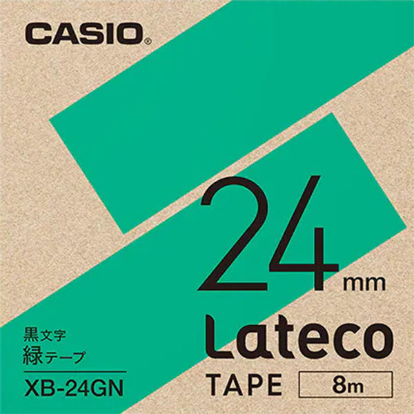 カシオ ラテコ 詰め替え用テープ 24mm 黒文字 / 緑テープ XB-24GN