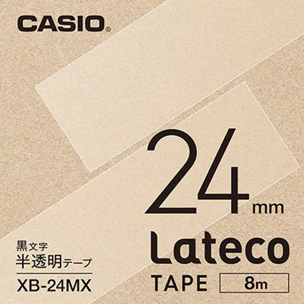 カシオ ラテコ 詰め替え用テープ 24mm 黒文字 / 半透明テープ XB-24MX