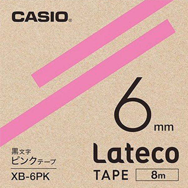 カシオ ラテコ 詰め替え用テープ 6mm 黒文字 / ピンクテープ XB-6PK