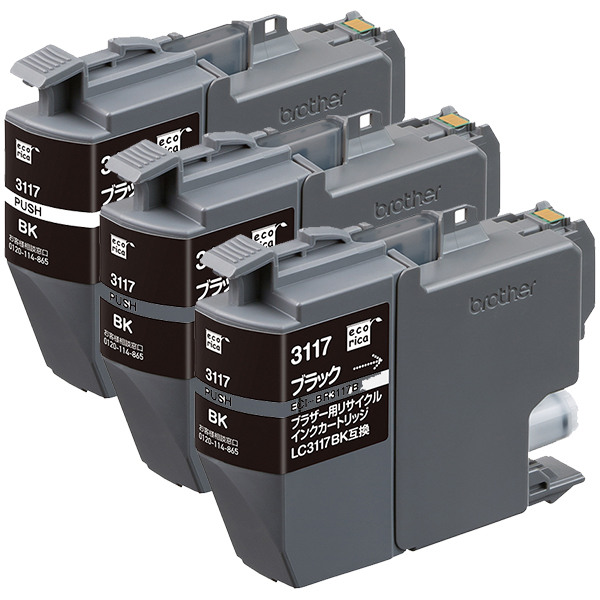 エコリカ LC3117BK対応 リサイクルインクカートリッジ ブラック ECI-BR3117B×3本