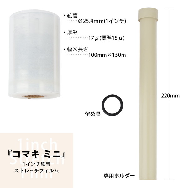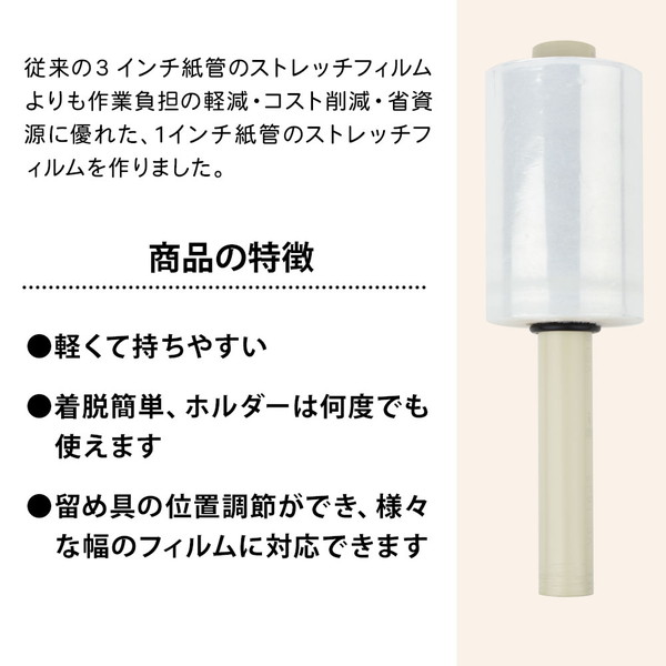 ハンドル1本付属 ミニハンディラップ 100mm幅×150m巻 ストレッチフィルム