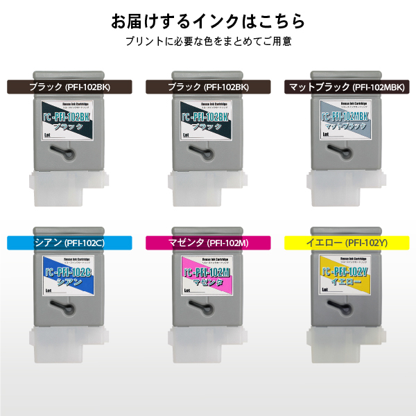 互換品 PFI-102 5色6本セット キヤノン互換インクタンク