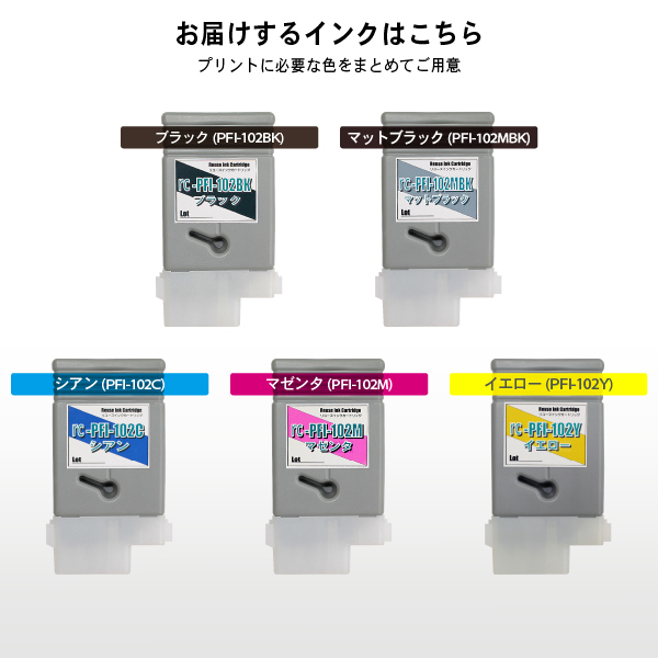 互換品 PFI-102 5色セット キヤノン互換インクタンク