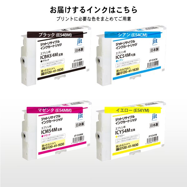 ジット JIT-E54BM/E54CM/E54MM/E54YM 4色セット | キヤノン ICBK54M/ICC54M/ICM54M/ICY54M 対応リサイクルインク
