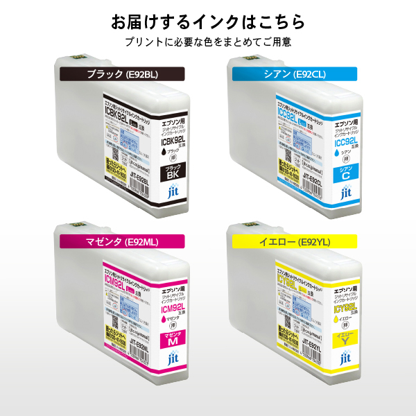 ジット JIT-E92BL/E92CL/E92ML/E92YL 4色セット | キヤノン ICBK92L/ICC92L/ICM92L/ICY92L 対応リサイクルインク