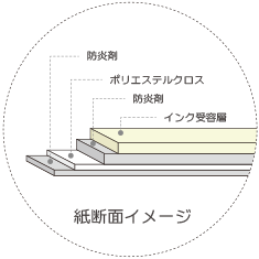 - 印刷面の生地目が目立ちにくく、カット後のほつれもありません。 特に、防炎性能が求められる用途に安心してご使用になれます。(日本防炎協会認定 製品番号: FR-04305 屋内/屋外防炎)