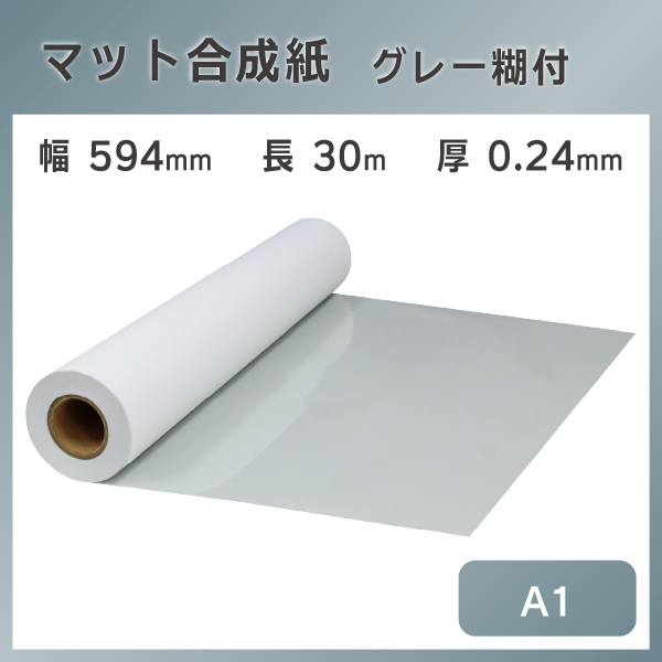 インクジェットロール紙 マット合成紙(グレー糊付) 幅594mm(A1)×長さ30m 厚0.24mm