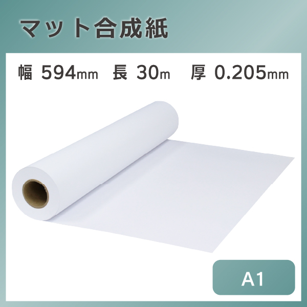 インクジェットロール紙 マット合成紙 幅594mm(A1)×長さ30m 厚0.205mm