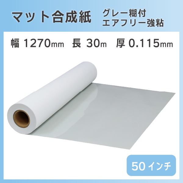 インクジェットロール マット合成紙 / グレーエアフリー糊付き 幅1270mm(50インチ)×長さ30m