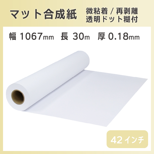インクジェットロール マット合成紙 / 微粘着 透明ドット糊付き 再剥離 幅1067mm(42インチ)×長さ30m