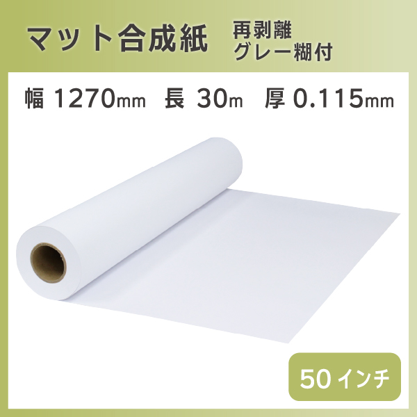 インクジェットロール マット合成紙 / 再剥離グレー糊付き 幅1270mm(50インチ)×長さ30m