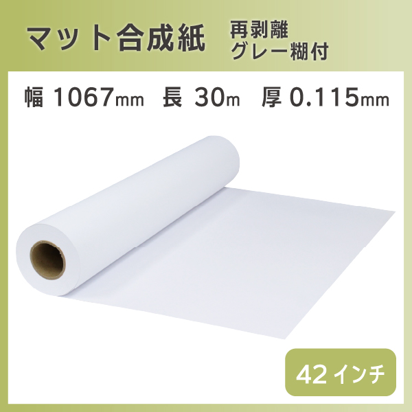 インクジェットロール マット合成紙 / 再剥離グレー糊付き 幅1067mm(42インチ)×長さ30m
