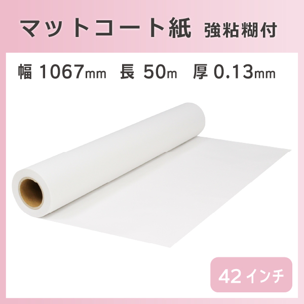 インクジェットロール マットコート紙 糊付き (強粘着) 幅1067mm(42インチ)×長さ50m