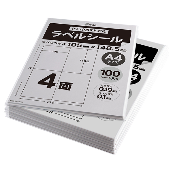 クリックポスト対応ラベル A4/4面 余白無し 100シート
