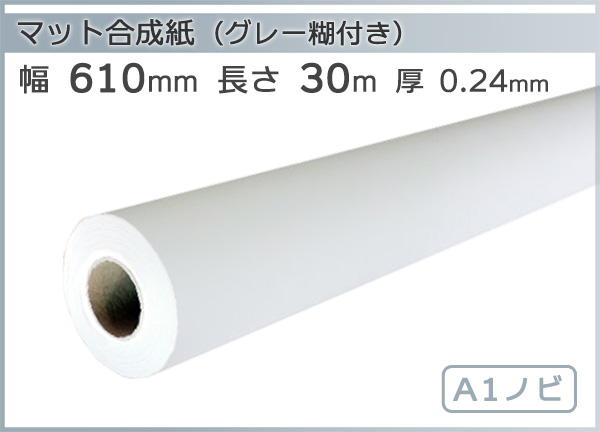 インクジェットロール紙 マット合成紙(グレー糊付) 幅610mm(A1ノビ)×長さ30m