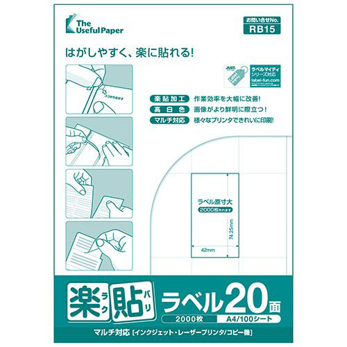 マルチタイプラベル 楽貼ラベル 20面 (RB15) A4 100枚