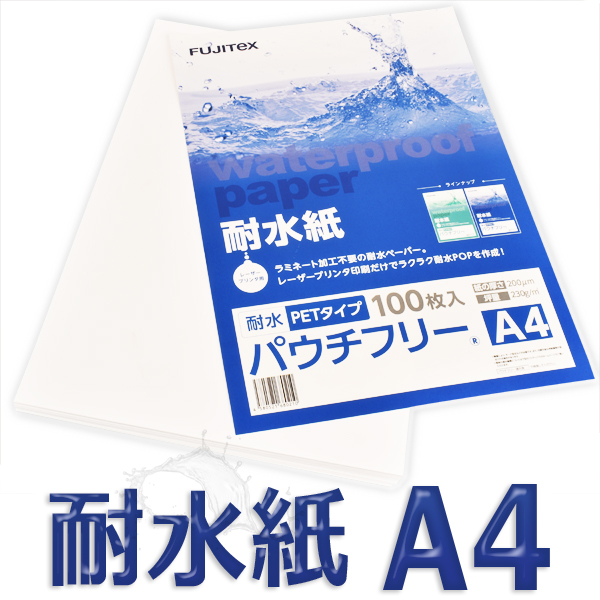 フジテックス 耐水紙 パウチフリー A4 PETタイプ (200μ) 100枚