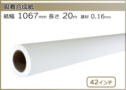 インクジェットロール紙 吸着合成紙 幅1067mm(42インチ)×長さ20m 基材 0.16mm