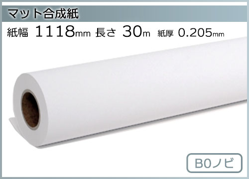インクジェットロール紙 マット合成紙 幅1118mm(B0ノビ)×長さ30m 厚0.205mm