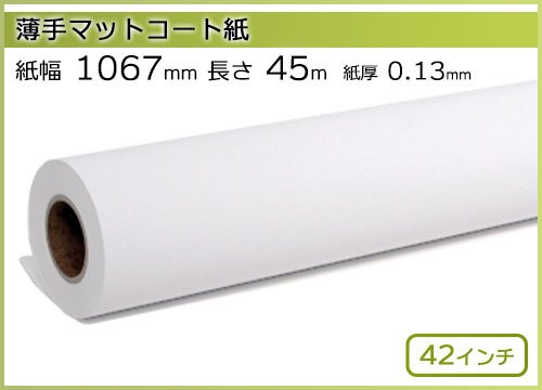 インクジェットロール紙 薄手マットコート紙 幅1067mm(42インチ)×長さ45m 厚0.13mm
