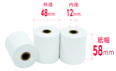 感熱ロール紙 紙幅58×外径48×芯内径12mm 高保存