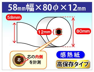 感熱ロール紙 幅58× 外径80× 芯内径12mm 高保存