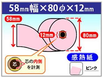 ピンク 感熱ロール紙 幅58× 外径80× 芯内径12mm ノーマル