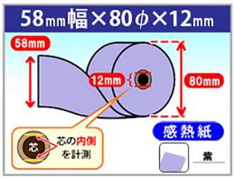 紫色 感熱ロール紙 幅58× 外径80× 芯内径12mm ノーマル