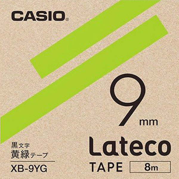 カシオ ラテコ 詰め替え用テープ 9mm 黒文字 / 黄緑テープ XB-9YG