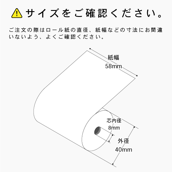 感熱ロール紙 幅58×外径40×芯内径8 [コアレス] ノーマル