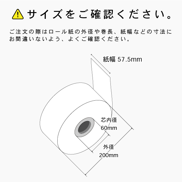 券売機用ロール紙 紙幅57.5mm×外径200mm×内径60mm 裏巻 150μ ブルー