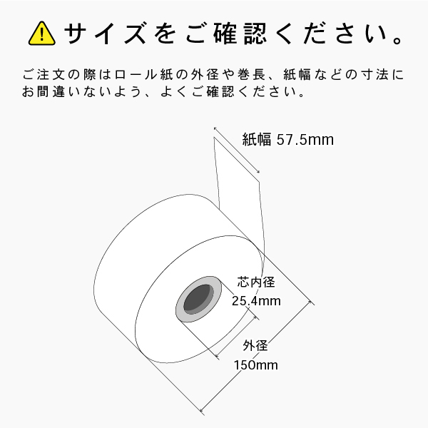 券売機用ロール紙 紙幅57.5×外径150×内径25.4mm 105μ 白