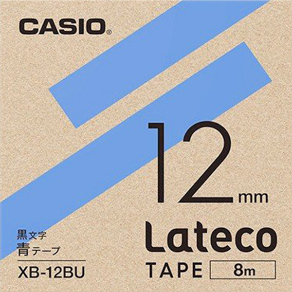 カシオ ラテコ 詰め替え用テープ 12mm 黒文字 / 青テープ XB-12BU