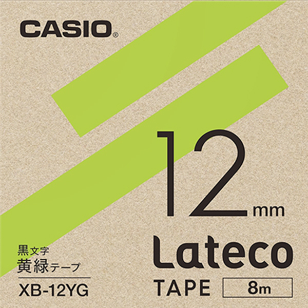 カシオ ラテコ 詰め替え用テープ 12mm 黒文字 / 黄緑テープ XB-12YG