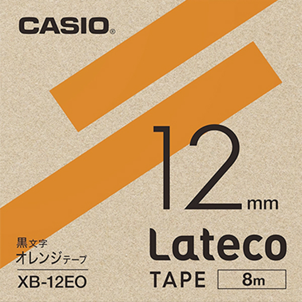 カシオ ラテコ 詰め替え用テープ 12mm 黒文字 / オレンジテープ XB-12EO