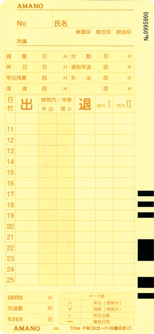 AMANO TimeP@CK(6欄印字) カードC 純正品